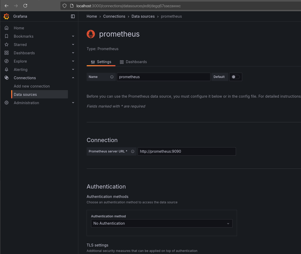 version: "3" services: prometheus: image: prom/prometheus ports: - 9090:9090 volumes: - ./prometheus_data:/prometheus - ./prometheus.yml:/etc/prometheus/prometheus.yml command: - "--config.file=/etc/prometheus/prometheus.yml" extra_hosts: - "host.docker.internal:192.168.1.120" # coloca aqui la IP local de tu equipo networks: - localprom grafana: image: grafana/grafana-enterprise ports: - 3000:3000 volumes: - ./grafana_data:/var/lib/grafana extra_hosts: - "host.docker.internal:192.168.1.120" # coloca aqui la IP local de tu equipo networks: - localprom depends_on: - prometheus networks: localprom: driver: bridge